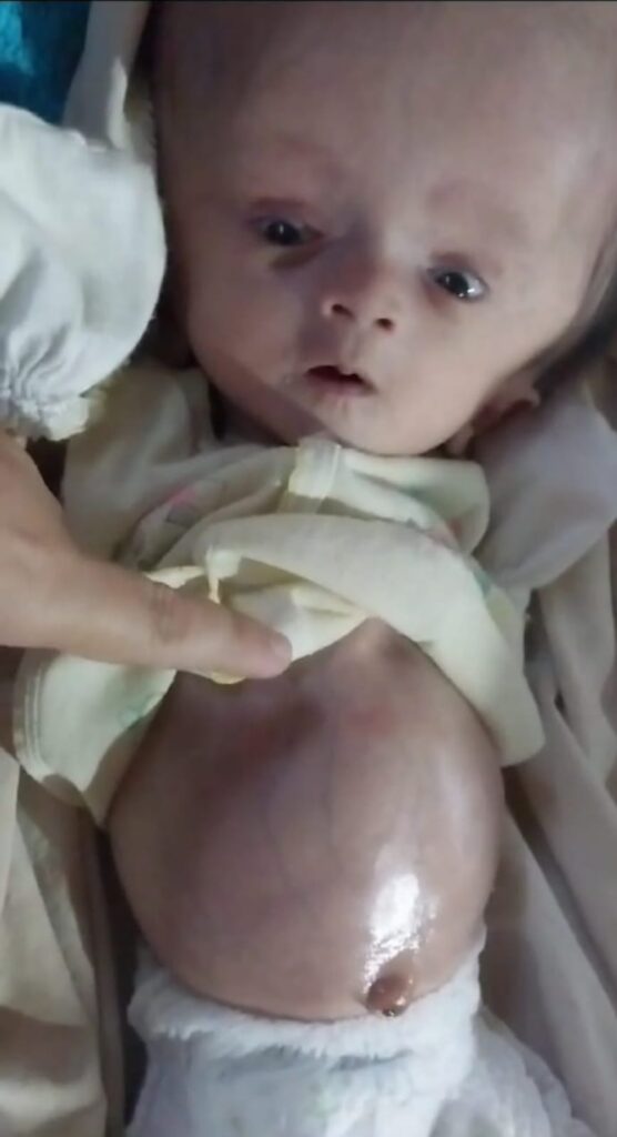 Lingkar besaran kepala pada bayi Muh.Atah sudah di 42 cm.Kondisi Atah sedikit agak menurun, terlihat perut yang bunciit keras dan padat , sungguh sangat memprihatinkan dan menimbulkan rasa iba melihatnya.