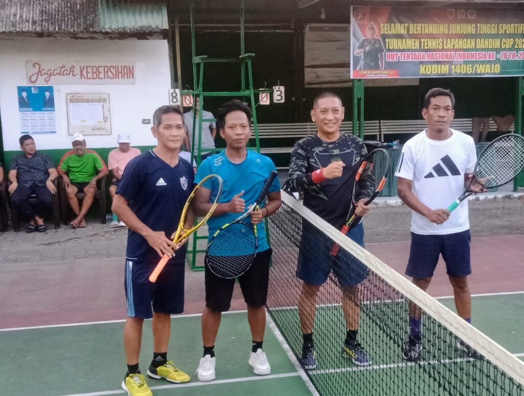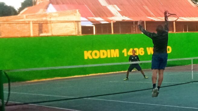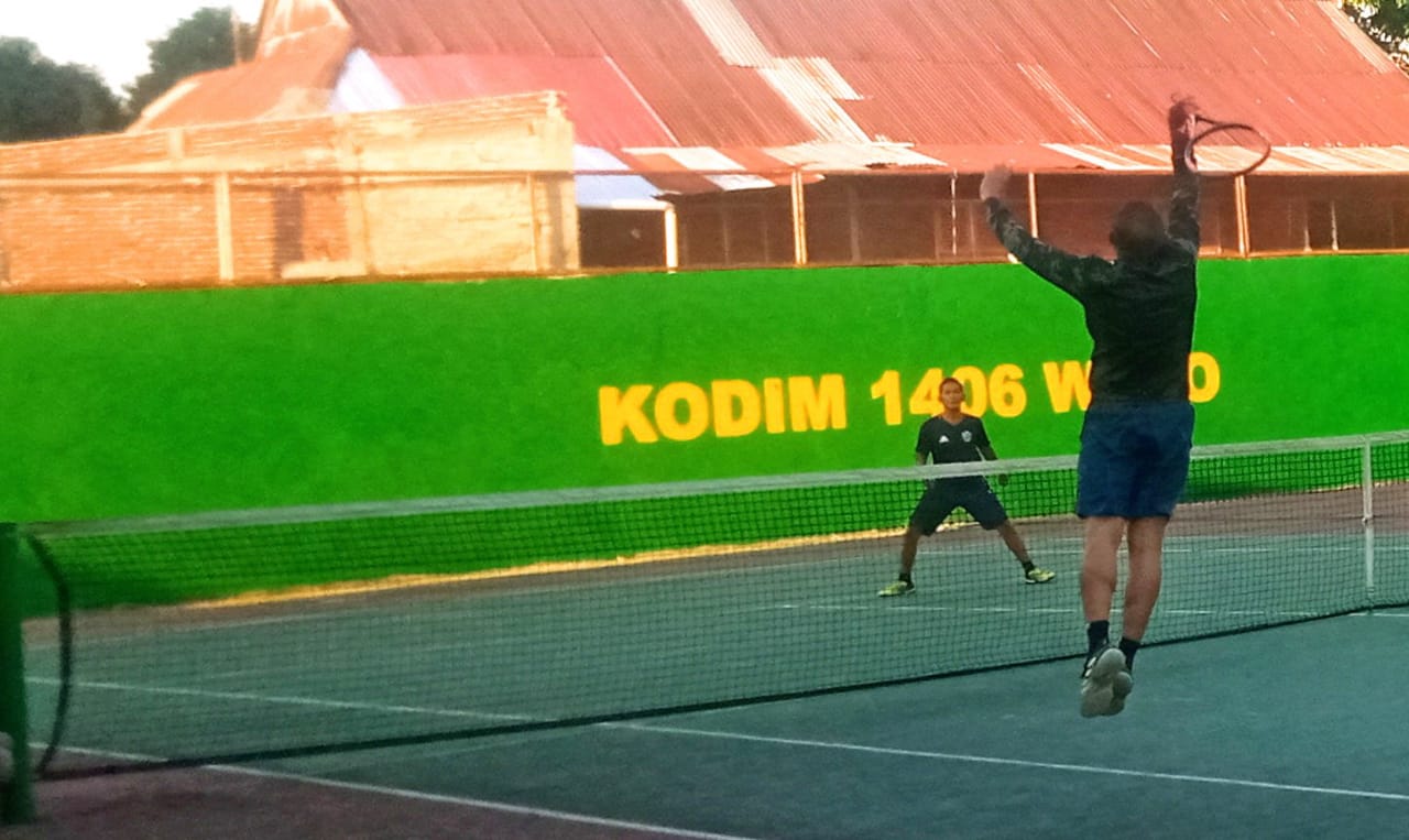 Pertandingan tenis Lapangan telah masuk di babak 8 besar yang mempertemukan pasangan Dandim 1406/Wajo Wahyu Yunus berpasangan dengan Iwan melawan Andi Hamka yang Berpasangan dengan Yus, di Lapangan AmannaGappa, Jalan Vetran, Kelurahan Lapongkoda, Kecamatan Tempe, Kabupaten Wajo, kamis 21 September 2023