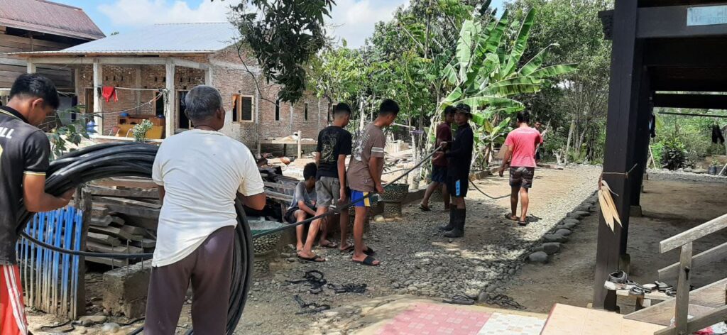 Kegiatan ini bertujuan untuk memastikan warga Desa Kalempang tetap memiliki akses ke air bersih selama musim kemarau. Sertu Darwis Tenreng bersama warga bergotong royong memasang pipa yang akan mengalirkan air dari sungai ke pemukiman warga.