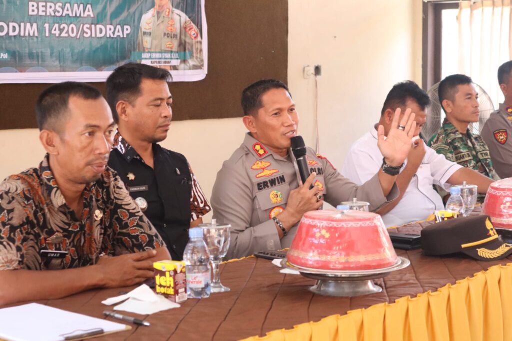 Kapolres Sidrap AKBP Erwin Syah juga menyampaikan kepada masyarakat Kecamatan Kulo untuk senangtiasa menjaga Stabilitas kamtibmas selama tahapan Pemilihan Kepala Desa di Kabupaten Sidrap maupun Pemilu 2024.