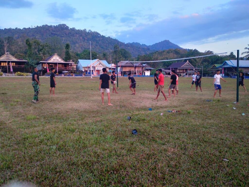 Lapangan olahraga Puang Patangngai berubah menjadi lautan semangat dan keceriaan. Suara tepuk tangan dan sorakan penonton menyemarakkan suasana. Generasi muda dan warga sekitar, bersama anggota Satgas TMMD, bermain bola voli dengan penuh antusiasme dan semangat.
