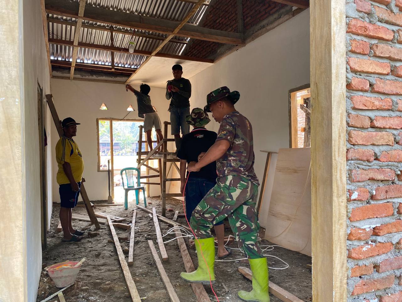 Kegiatan ini memerlukan kerja keras dan kolaborasi dari anggota Satgas TMMD yang berdedikasi. Mereka bekerja bersama untuk memastikan bahwa pemasangan plafon dilakukan dengan teliti dan sesuai standar.