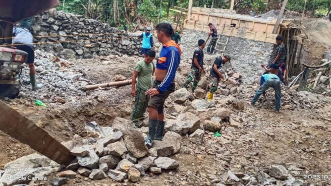 Anggota Satgas TMMD, dengan semangat kerja keras dan gotong royong, bekerja secara intensif untuk menyelesaikan pengerjaan talud ini. Tujuan mereka adalah untuk memastikan bahwa jembatan ini aman dan nyaman untuk digunakan oleh masyarakat setempat.