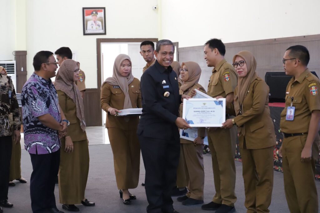 Pada kesempatan tersebut, Bupati Wajo, Amran Mahmud menyerahkan Penghargaan kepada Pejabat yang melaporkan LHKPN tercepat.