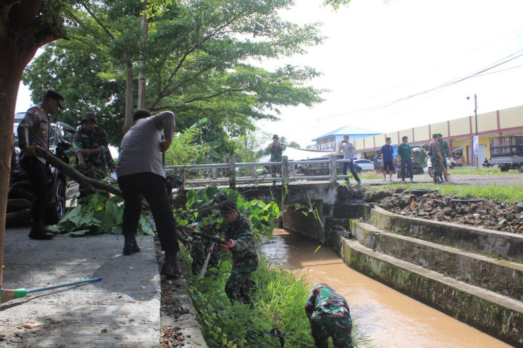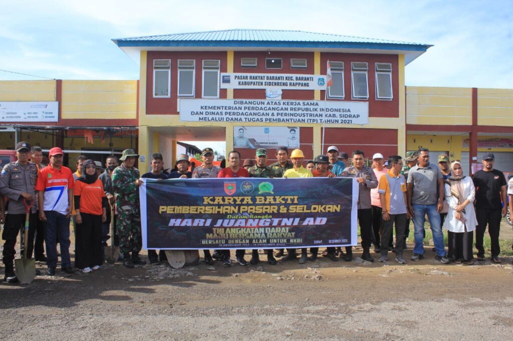 SIDRAP Sulsel Okeindonesia.com- Kodim 1420/Sidrap gelar karya bakti membersihkan lingkungan pasar Baranti, di Desa Paseno Kecamatan Baranti Kabupaten Sidrap, dalam rangka membersihkan tempat bersarangnya jentik nyamuk sebagai wabah penyakit dan terjadinya bencana banjir jelang musim penghujan, Kamis (13/12/2023).