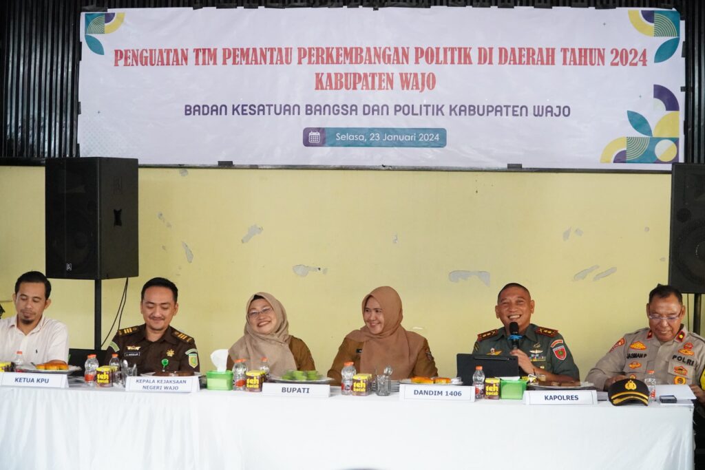 Giat penguatan tim pemantau tersebut merupakan inisiatif dari Badan Kesbangpol Kabupaten Wajo yang diselenggarakan di The Lounge Garden, Jl. Andi Lantara, Kelurahan Lapongkoda, Kecamatan Tempe, Kabupaten Wajo pada hari Selasa, tanggal 23 Januari 2024. Acara dihadiri oleh sekitar 70 orang, dengan Drs. Sony Paisal sebagai penanggung jawab acara.