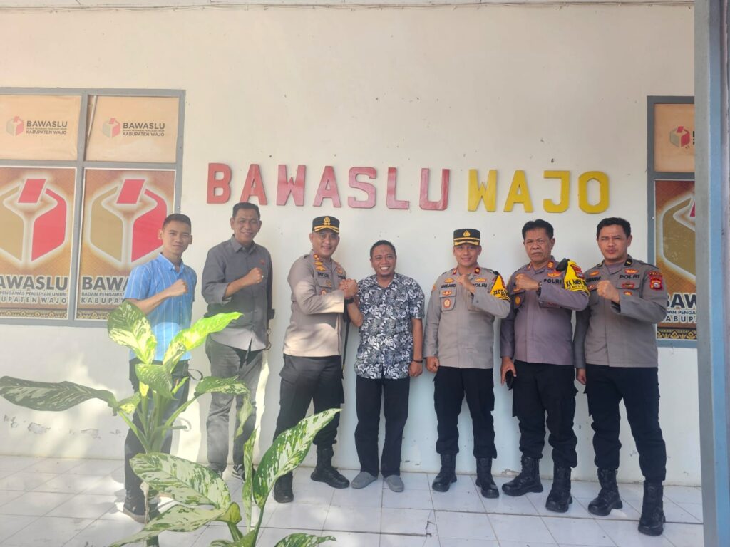 WAJO Sulsel Okeindonesia.com- Pesta demokrasi Pemilu 2024 akan segera dilaksanakan dalam waktu ini, tepatnya tanggal 14 Februari 2024. Kapolres Wajo AKBP Fatchur Rochman, S.H., MH didampingi Waka Polres Wajo Kompol Hardjoko, S.H., M.H, silaturahmi di Kantor Badan Pengawas Pemilu (Bawaslu) Bangkalan dan Kantor Komisi Pemilihan Umum Daerah (KPUD) Kabupaten Wajo. Jum’at (09/02/2024).