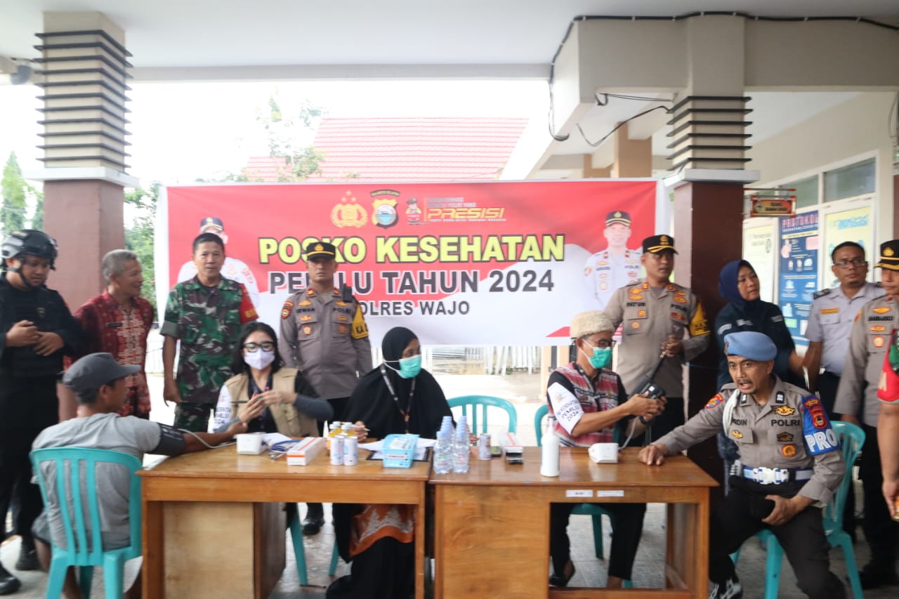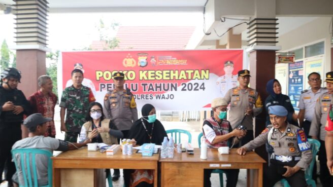 “Tim Kesehatan dari Polres Wajo kita kerahkan untuk melakukan pengecekan kesehatan terhadap penyelenggara Pemilu, Bawaslu dan Personil Pengamanan baik dari TNI/Polri dan Linmas serta stake holder terkait lainnya yang turut membantu pelaksanaan penyelenggaraan pemilu 2024, selain kita cek kesehatannya juga kita berikan dukungan vitamin”, Ucap Kapolres.