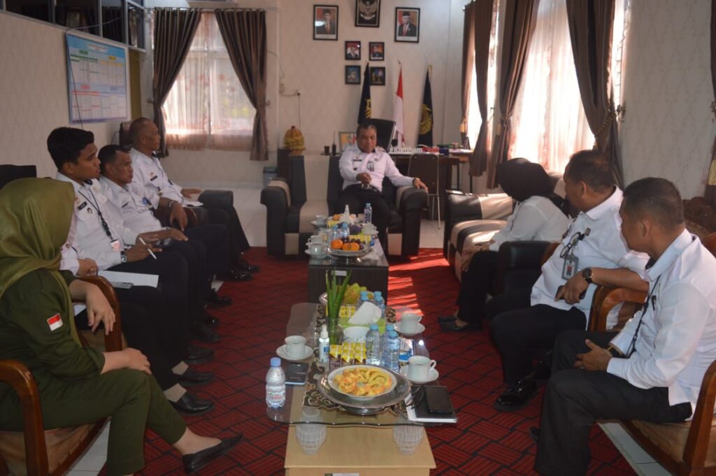 Kunjungan kerja Kabid Pelayanan Tahanan, Kesehatan, Rehabilitasi, Pengelolaan Basan Baran dan Keamanan Kanwil Kemenkumham Sulsel, Surianto bersama Tim Monev disambut langsung oleh Kepala Rutan (Karutan) Kelas IIB Sengkang, Amir S di ruang kerjanya.