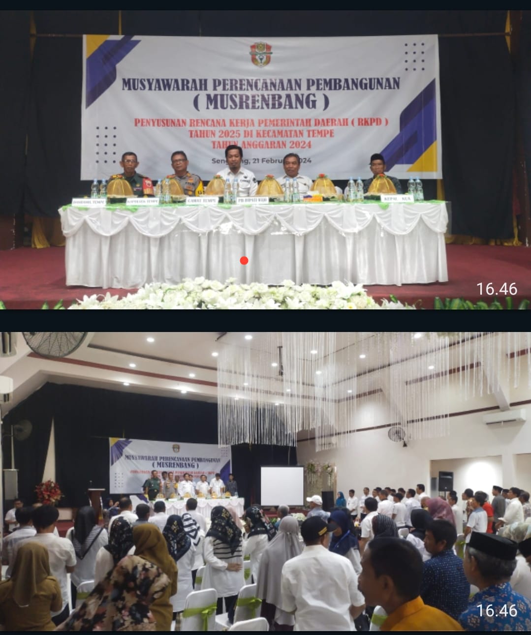 WAJO Sulsel Okeindonesia.com- Pada hari Rabu, tanggal 21 Februari 2024 di Glory Convention Centre (GCC) jalan Sawerigading Kelurahan Maddukelleng Kecamatan Tempe Kabupaten Wajo. Kapolsek Tempe, AKP Andi Muhammad Takdir menghadiri Kegiatan Musyawarah Perencanaan Pembangunan (Musrenbang) untuk Penyusunan Rencana Kerja Pembangunan Daerah (RKPD) 2025 di tingkat Kecamatan Tempe, Kabupaten Wajo.