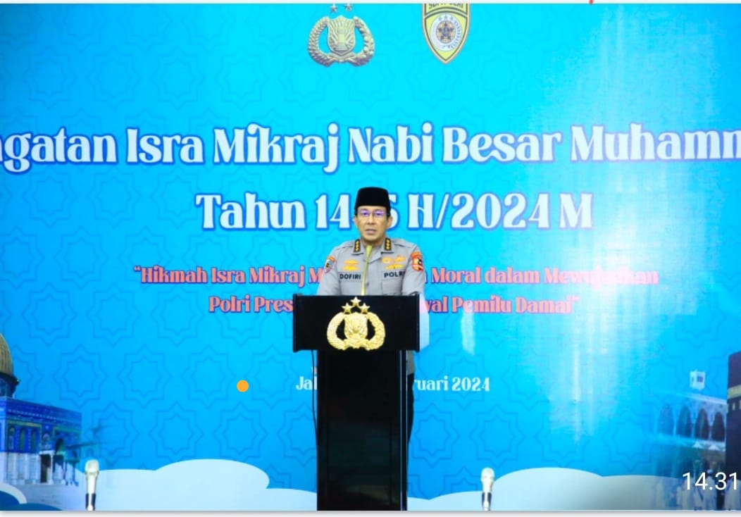 Irwasum Polri pun mewakili Kapolri Jenderal Polisi Drs. Listyo Sigit Prabowo membacakan sambutan. Isra Mikraj ini pun diselenggarakan dengan tema Hikmah Isra Mikraj Menanamkan Moral Dalam Mewujudkan Polri Presisi Siap Mengawal Pemilu Damai.