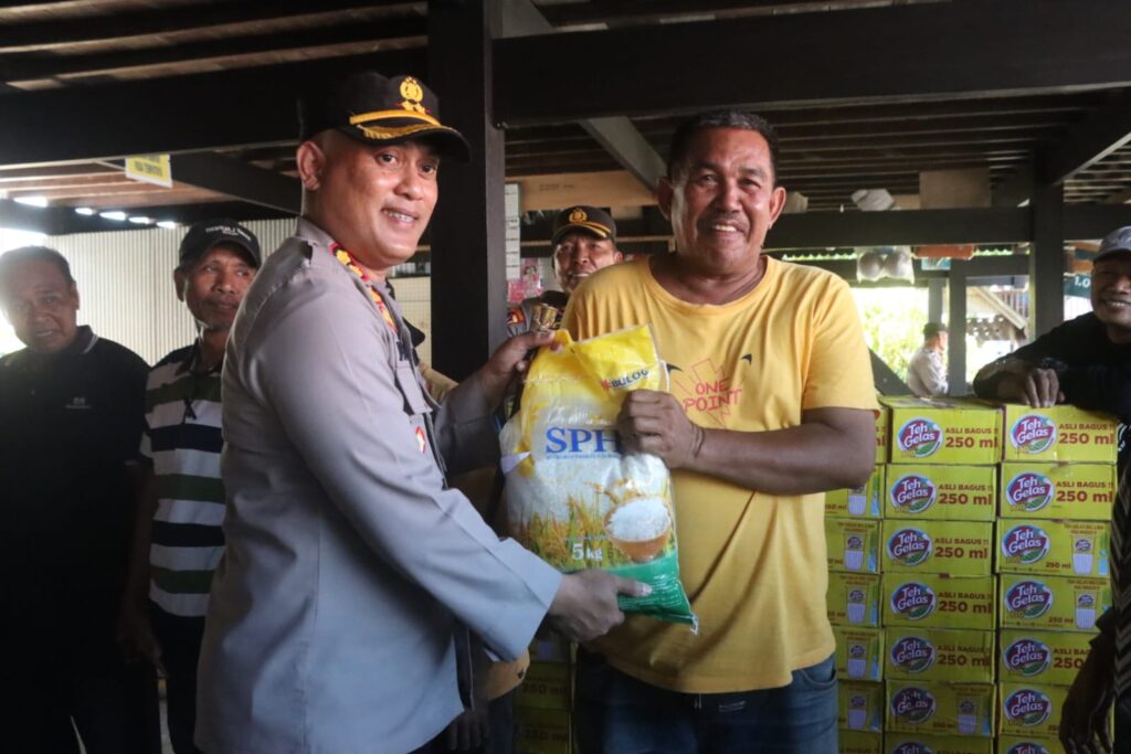 Adapun bantuan sembako yang di berikan Kapolres kepada masyarakat yang terdampak banjir, beras 100 sak (5 kg ) dan Teh Gelas 100 Dos.