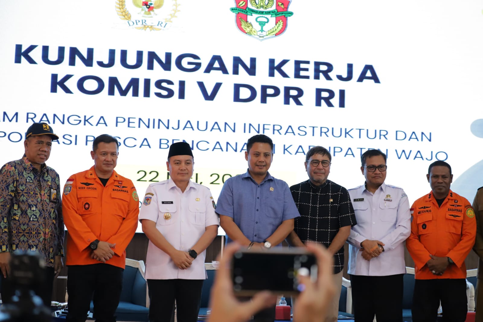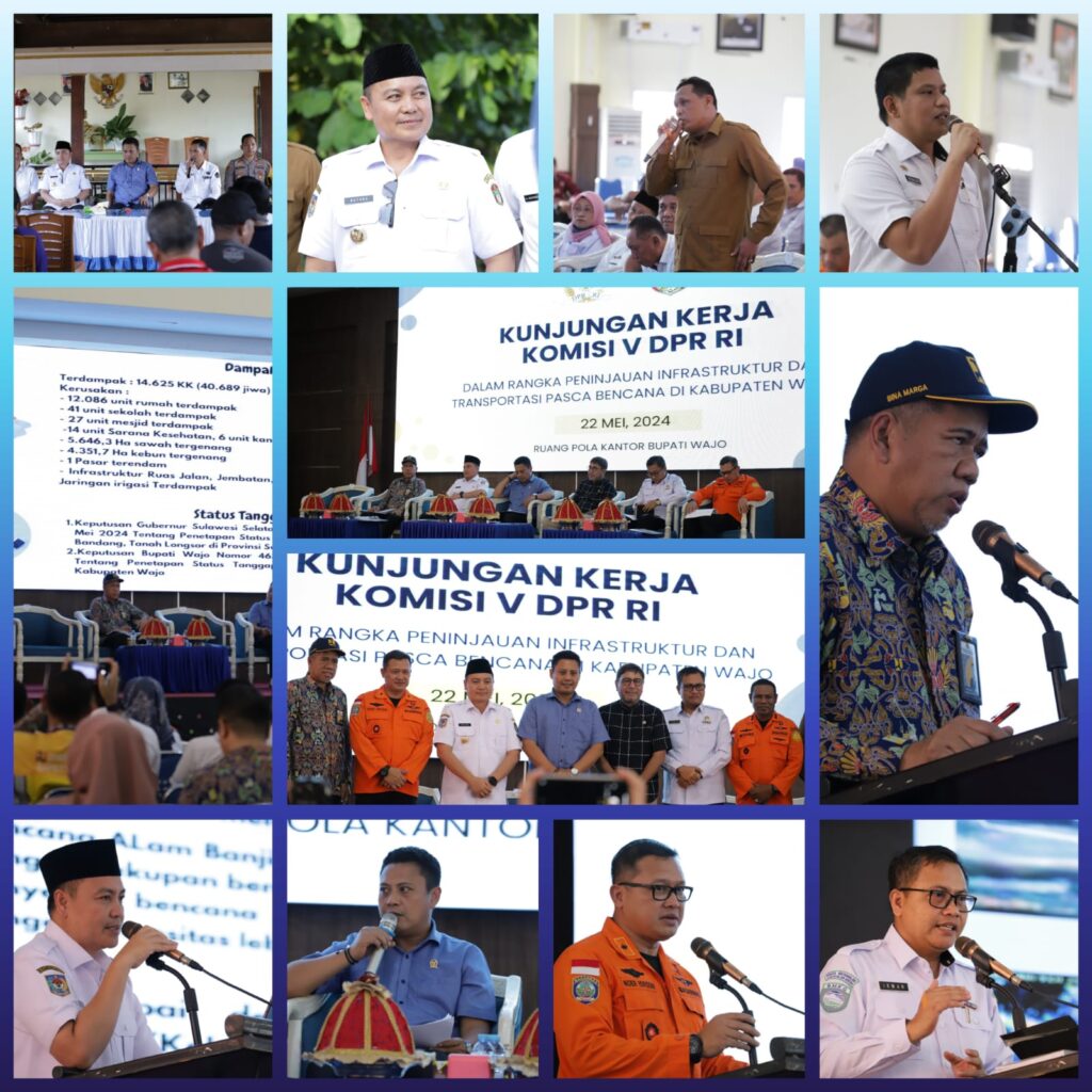 Dalam Sambutannya Penjabat Bupati Wajo Andi Bataralifu menyampaikan bahwa Kondisi Kabupaten Wajo pada saat banjir dimulai hujan deras pada tanggal 29 April 2024 sampai 5 Mei 2024 dan menyebapkan debit air meningkat dan menggenangi pemukiman, yang mana posisi kabupaten wajo sesungguhnya posisi hilir, hulunya di soppeng sidrap, bone dan luwu dan semua berujung di kabupaten wajo. Dampak banjir mengenangi 9 kecamatan dan 57 desa/kelurahan kategori bencana agak berat, kecamatan tempe ada beberap area masih tergenang, dampak banjir ini terdampak pada 14.600 KK, 12.000 unit rumah, 41 Unit sekolah, 27 masjid, 14 sarana kesehatan, 5600 h Sawah, 4000 h kebun, dan pasar, termasuk jalan jembatan talud dan drainase. Dan sudah ada beberapa yang kami perbaiki menggunakan APBD, terakhir Andi Bataralifu sampaikan jika sekiranya setiap kerusakan dapat menjadi atensi untuk merecovery jalan jembatan darinase dan saluran irigasi.