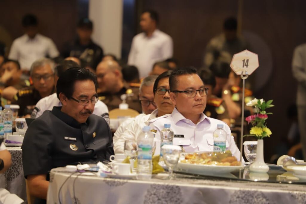 Rakor ini dihadiri oleh Menko Polhukam RI Marsekal TNI (Purn) Hadi Thahjanto, S.IP., bersama Mendagri RI Jenderal Polisi Prof. Drs. H. Muhammad Tito Karnavian, B.A., M.A., Ph.D., Ketua KPU RI Hasyim Asy’ari, S.H., M.Si., Ph.D., Ketua Bawaslu RI Rahmat Bagja, S.H., LL. M. Kabaharkam Polri Mohammad Fadli Imran, M.Si., mewakili Kapolri dan Pangkogabwilham II Marsdya TNI M. Khairil Lubis selaku pemateri, Gubernur, Kapolda, Forkopimda Provinsi, Kajati, Ketua KPU Bawaslu Provinsi, Bupati/Walikota, Kapolres, Kajari, Tokoh Agama, Tokoh Masyarakat, dan Organisasi
