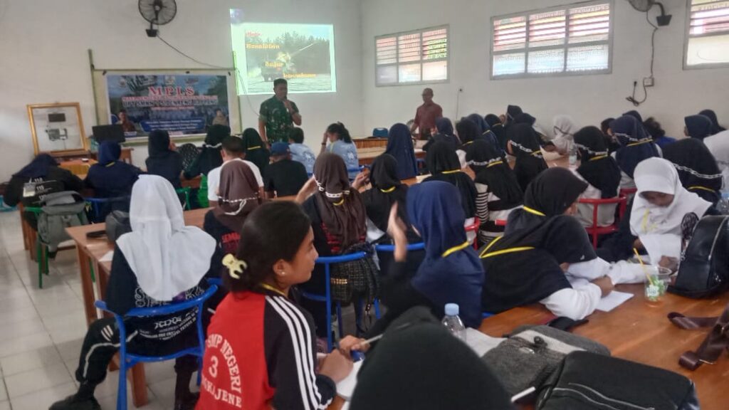 Sidrap Sulsel Okeindonesia.online- Bertempat di SMKN 1 Kab Sidrap siswa Baru SMKN 1 Sidrap mendapatkan pembekalan pemahaman wawasan kebangsaan dan bela negara yang dibawakan oleh Kasdim 1420/Sidrap Mayor Arm Arie Widarto. Jum’at (12/07/24)