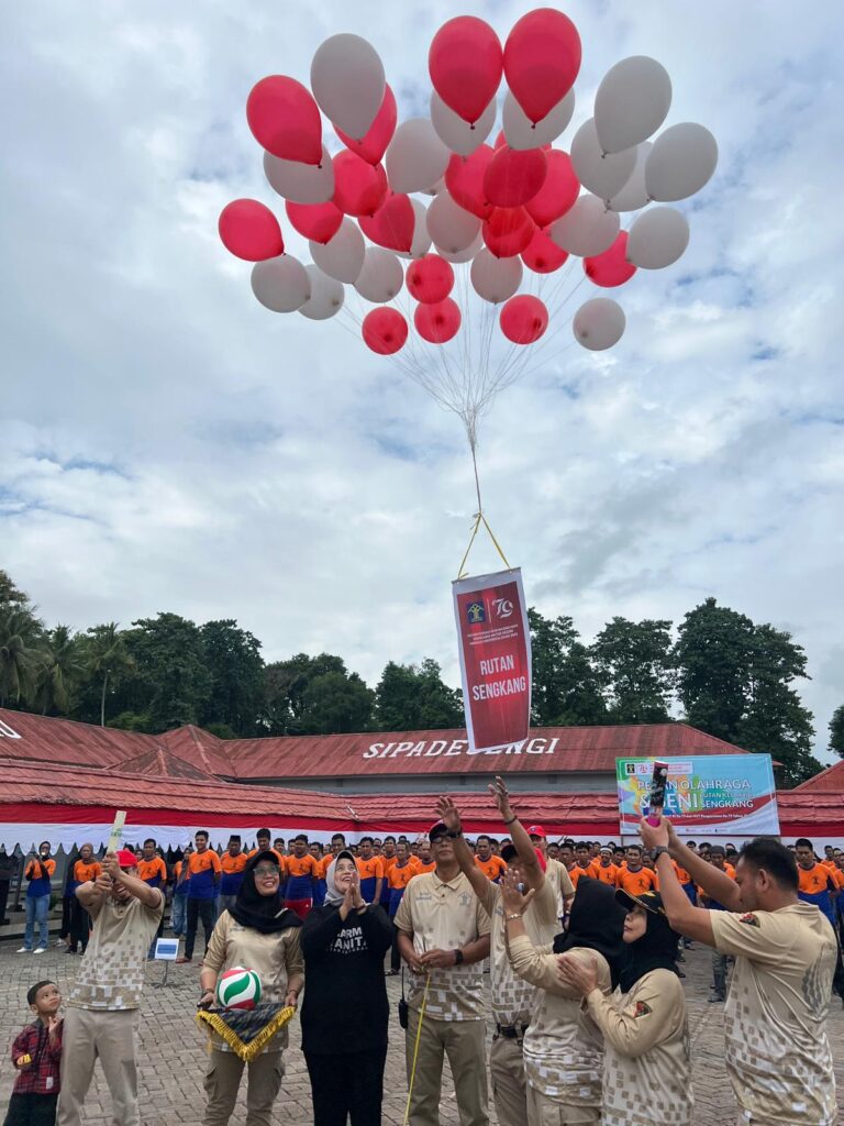 Diakhir Kegiatan Amir bersama Pejabat Struktural melakukan pelepasan balon gas dan baliho dilanjutkan dengan pelemparan bola Voli sebagai simbol atau tanda dibukanya kegiatan Porseni.