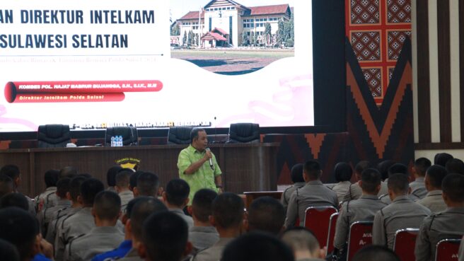 Makassar Sulsel Okeindonesia.online- Direktorat Intelkam Polda Sulsel Berikan Materi Dalam Orientasi Bintara dan Tamtama Polda Sulsel T.A. 2024