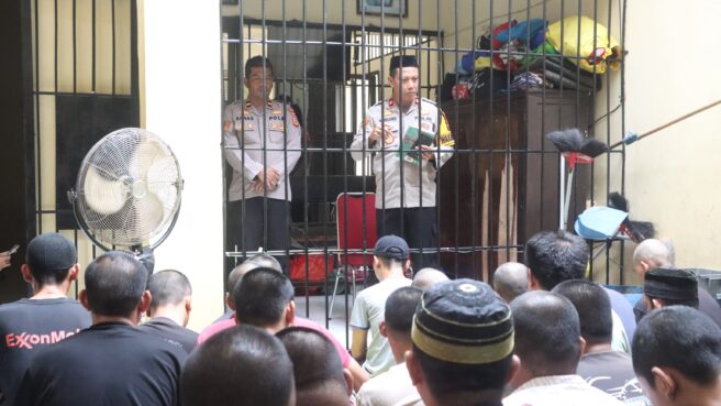 Wajo Sulsel Okeindonesia.online- Kegiatan rutin Binrohtal (Bimbingan Rohani dan Mental) Tahanan dilaksanakan di Rutan Polres Wajo, yang merupakan bagian dari upaya motivasi dan pembinaan rohani bagi para tahanan selama menjalani proses hukum.