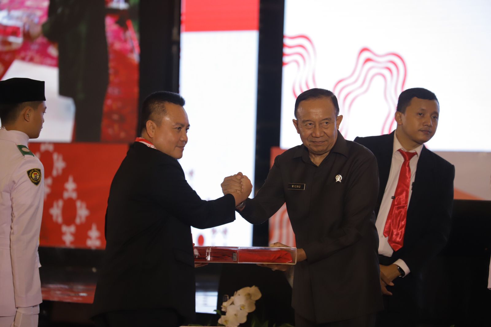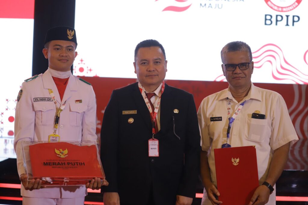 Jakarta Okeindonesia.online- Penjabat (Pj) Bupati Wajo Andi Bataralifu menerima duplikat Bendera Pusaka Merah Putih, Salinan Teks Proklamasi, Naskah Pidato Bung Karno 1 Juni 1945, dan Buku Teks Utama Pendidikan Pancasila diterima langsung dari Kepala BPIP, Prof. Drs. KH Yudian Wahyudi, MA, Ph.D. di Balai Samudra Kelapa Gading Jakarta, Selasa ( 6/8/2024 ).