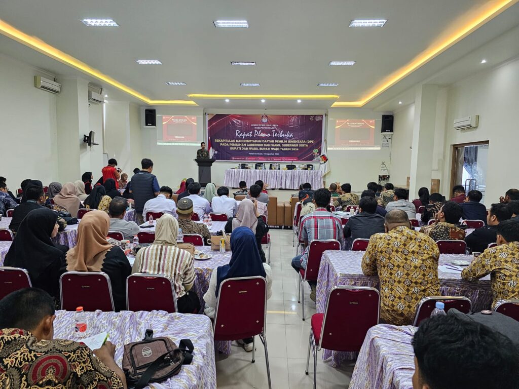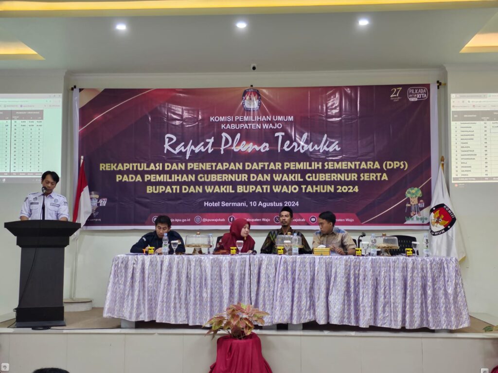 Waka Polres Wajo Kompol Hardjoko mengatakan dalam Rapat Pleno tersebut membahas hasil rekapitulasi daftar pemilih hasil perbaikan DPS yang telah dilakukan. Hasil rekapitulasi tersebut akan menjadi dasar untuk penetapan Daftar Pemilih Tetap (DPT) yang akan digunakan pada saat Pemilihan Gubernur dan Wakil Gubernur serta Bupati dan Wakil Bupati Wajo tahun 2024 di Kabupaten Wajo,