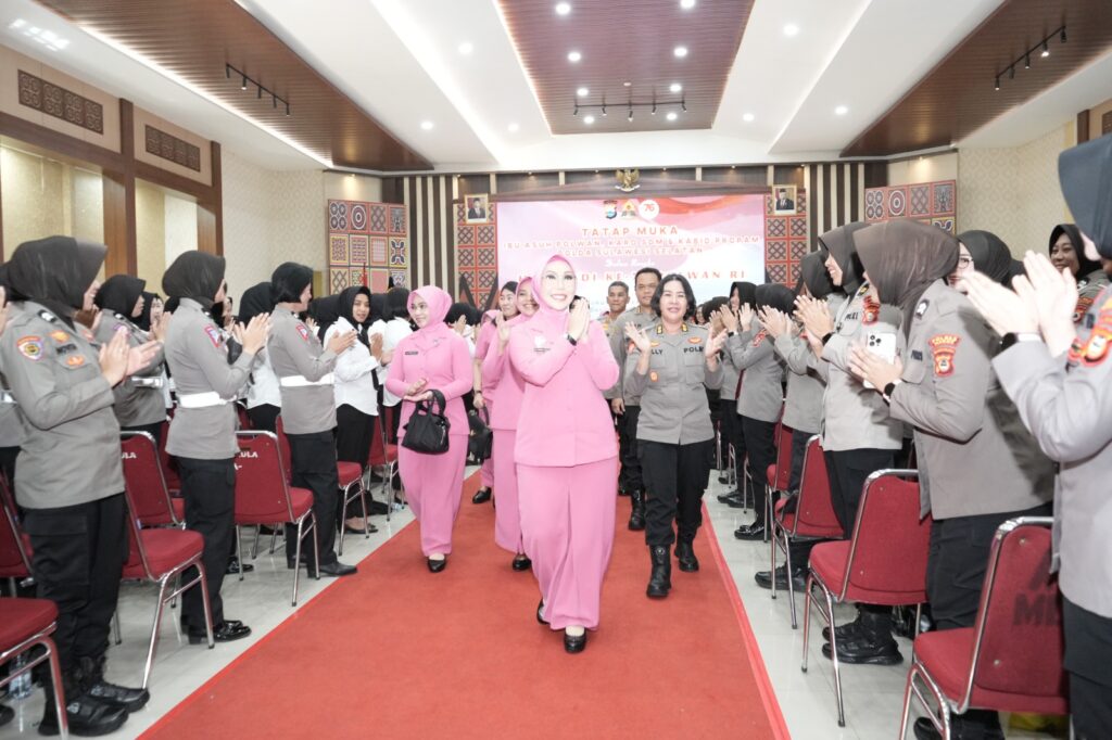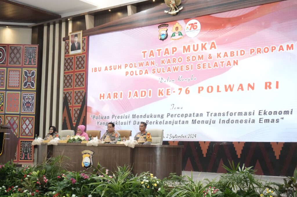 Kegiatan tatap muka dihadiri Ibu Ketua Bhayangkari Daerah Sulsel Ny. Dewwi Andi Rian yang juga sebagai Ibu Asuh Polwan Polda Sulsel, Karo SDM Kombes Aris Haryanto dan Kabidpropam Kombes Zulham serta seluruh Polwan Satker Polda dan perwakilan Satwil jajaran.