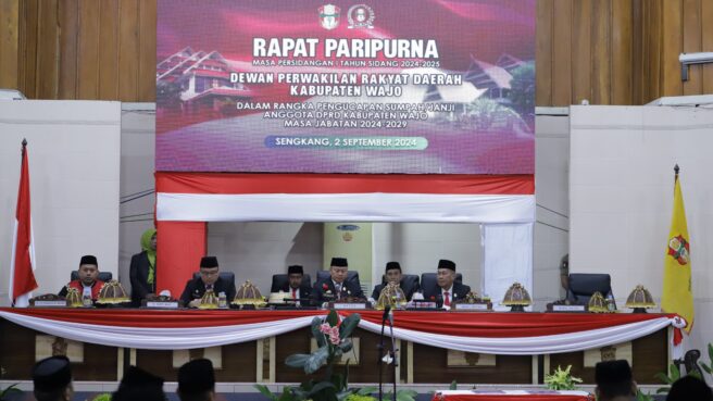 Wajo Sulsel Okeindonesia.online- Pj. Bupati Wajo Andi Bataralifu menghadiri pelantikan anggota DPRD Kabupaten Wajo periode 2024-2029. Pelantikan 40 anggota DPRD Wajo ini melalui rapat Paripurna DPRD Wajo di Gedung Utama lantai II, Senin (2/9/2024).