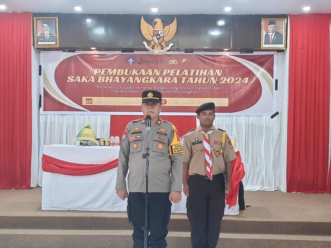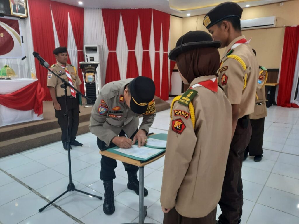 Wajo Sulsel Okeindonesia.online- Pada hari Minggu tanggal 15 September 2024 Pukul 13.30 s/d 14.30 Wita di Aula Sandi Polres Wajo. melaksanakan pelantikan dan pengukuhan pengurus Cabang dan Ranting periode tahun 2024/2025 Saka Bhayangkara Cab. Wajo sebanyak 175 orang