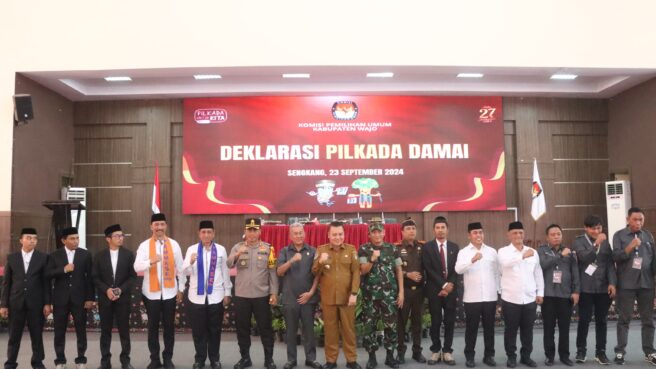 Ketua KPU Wajo didampingi oleh Komisioner KPU Kab.Wajo, dan di hadiri oleh Pj. Bupati Wajo, Ketua bersama anggota DPRD Kab.Wajo, Kapolres Wajo, Dandim1406 /Wajo, Kepala Kejaksaan Sengkang, Seluruh SKPD Kab.Wajo, Ketua dan Anggota Bawaslu Kab.Wajo.