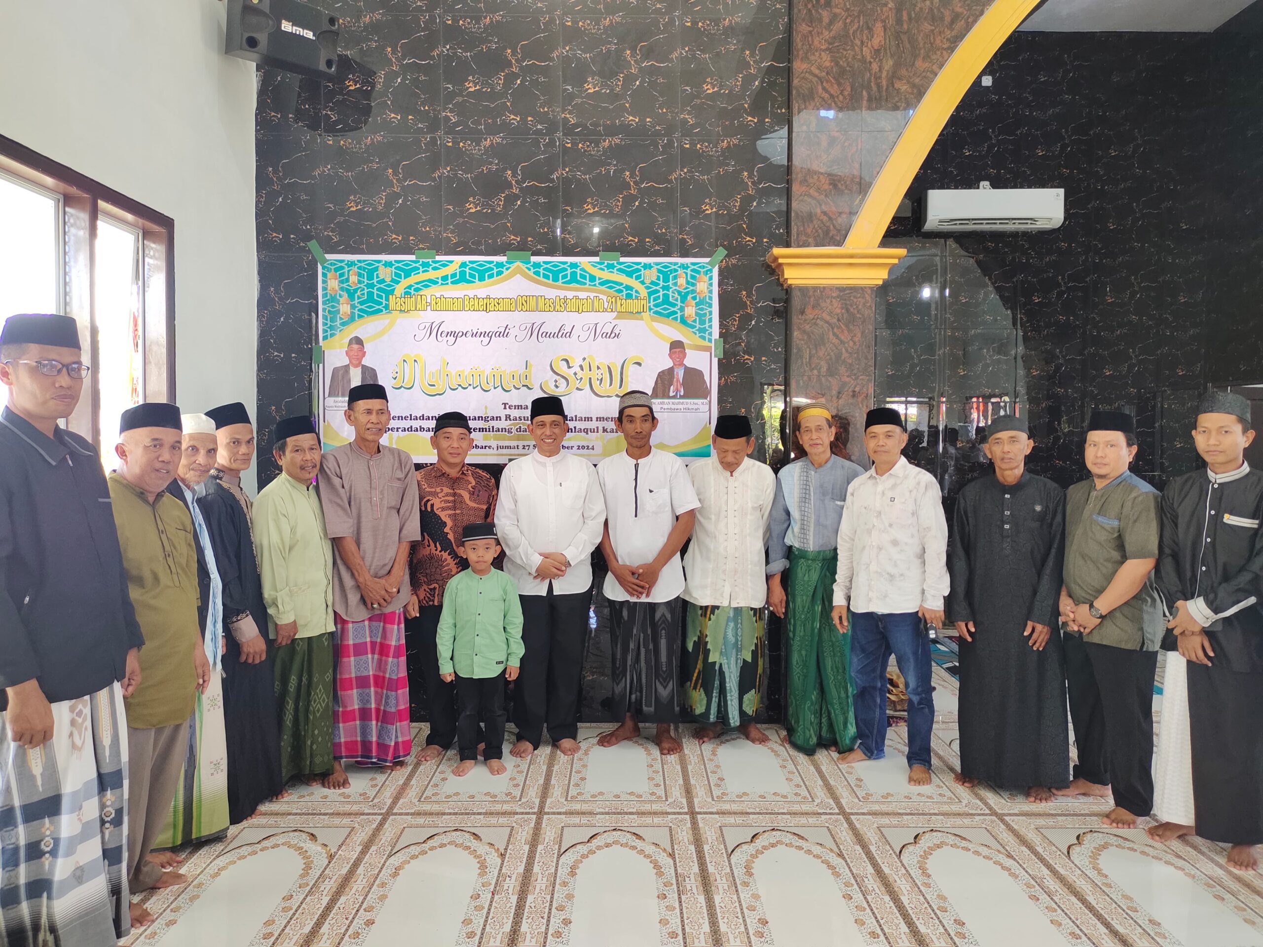 Wajo Sulsel Okeindonesia.online- Dalam acara peringatan Maulid Nabi Muhammad SAW yang diselenggarakan OSIM Madrasah Aliyah Swasta As’Adiyah No 21 Kampiri bekerjasama dengan pengurus Masjid Ar-Rahman Mappolobare, Desa Patila Kecamatan Pammana, Kabupaten Wajo, Dr.H.Amran Mahmud, S.Sos, M.Si., di daulat sebagai pembawa hikmah Maulid. Jumat (27/9/2024).