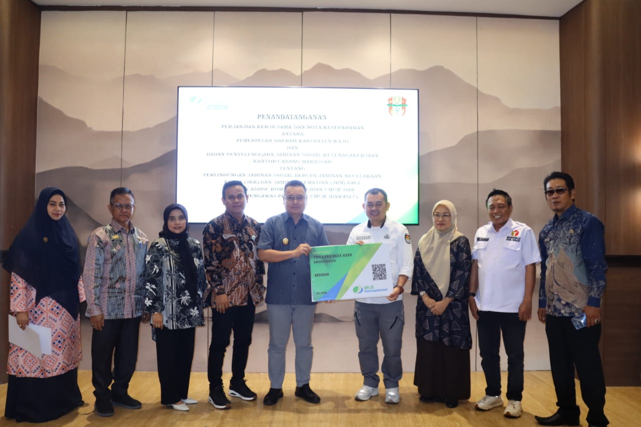 Kerjasama ini ditandai dengan Penandatanganan Perjanjian Kerja Sama dan Nota Kesepahaman Antara Pemerintah Daerah Kabupaten Wajo dan Badan Penyelenggara Jaminan Sosial Ketenagakerjaan Kantor Cabang Makassar Tentang Perlindungan Jaminan Sosial Berupa Jaminan Kecelakaan Kerja (JKK) dan Jaminan Kematian (JKM) Bagi Badan Adhoc Komisi Pemilihan Umum dan Badan Pengawas Pemilihan Umum (Bawaslu). Penandatanganan dilaksanakan di Hotel Claro Makassar, Kamis 10 Oktober 2024.