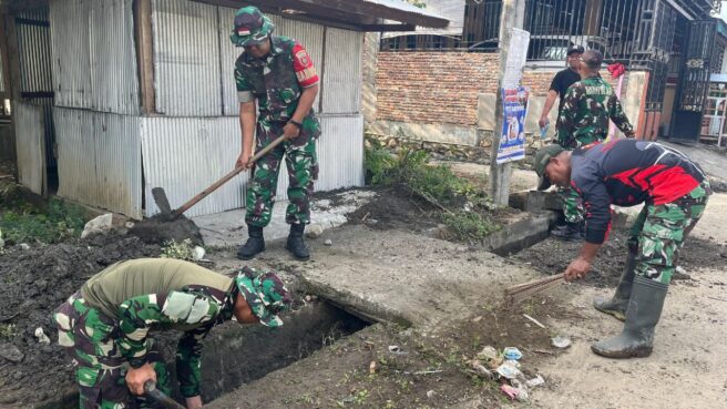 Saat dikonfirmasi dilokasi Letda Inf Murjalil mengatakan karya bakti yang dilaksanakan hari ini berfokus pada pembersihan saluran air pada Bahu kanan kiri jalan terkait adanya masukan dari masyarakat bahwa apabila turun hujan akan terjadi banjir yang menyebabkan rusaknya fasilitas umum dan terganggunya aktifitas masyarakat.” Tuturnya