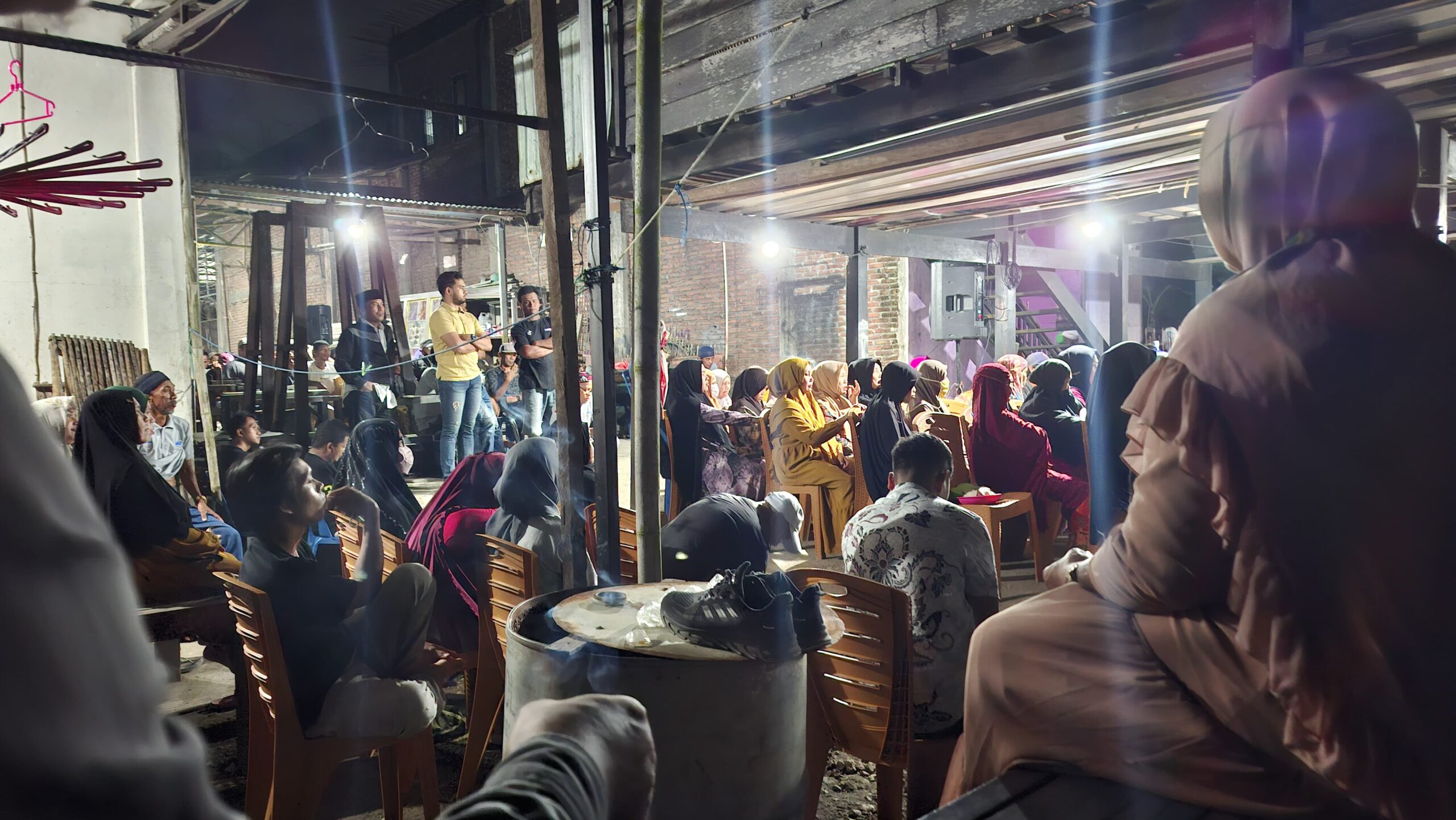 Salah satu rumah warga di Simae, berubah jadi panggung harapan. Udara malam yang biasanya tenang kini dipenuhi gemuruh suara. Anak-anak berlarian, orang tua bercengkerama, pedagang kaki lima sibuk melayani permintaan. Di sana-sini, obrolan tentang masa depan Sidrap terdengar, mengambang bersama semilir angin yang membawa wangi tanah basah.