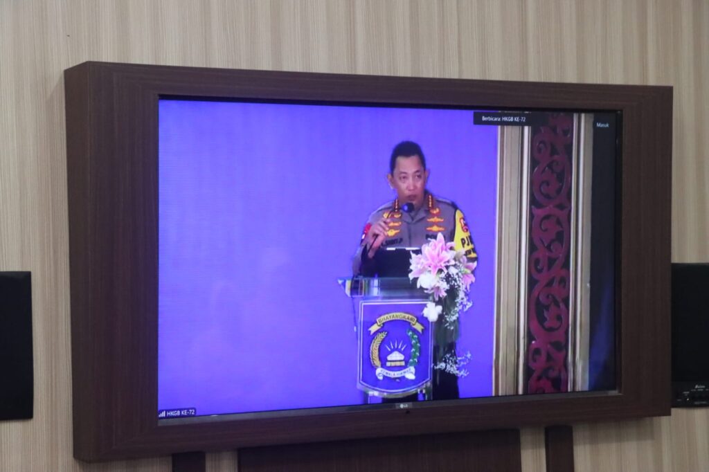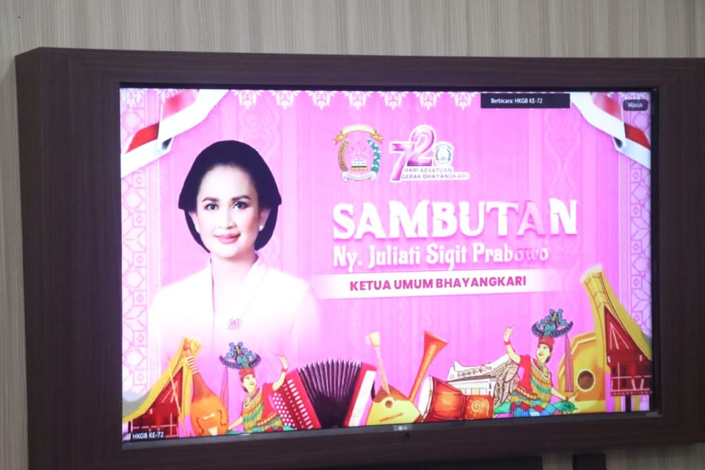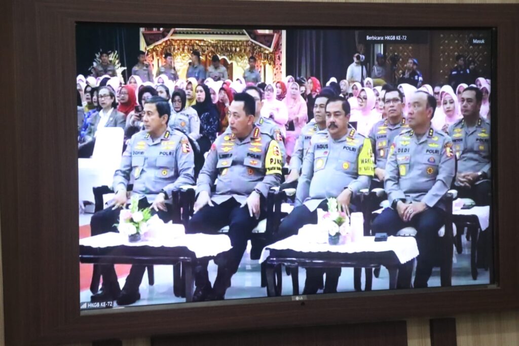 Peringatan Hari Kesatuan Gerak Bhayangkari (HKGB) secara virtual tersebut dipimpin oleh Ketua Umum Bhayangkari Pusat Ny. Juliawati Sigit Prabowo dengan mengusung Tema “Bhayangkari Mendukung Polri Presisi membangun Negeri Menuju Indonesia Emas”.