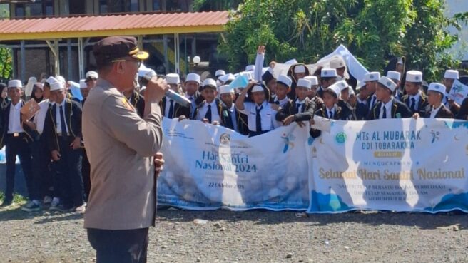 Dalam sambutan Kapolsek, Ia mengingatkan kepada seluruh Siswa – Siswi Santri untuk mengambil hal yang terbaik dalam pelaksanaan hari santri, selanjutnya menghimbau agar berbenah dan membantu menjaga KAMTIBMAS,” terang mantan Kapolsek Pancarijang Polres Sidrap.