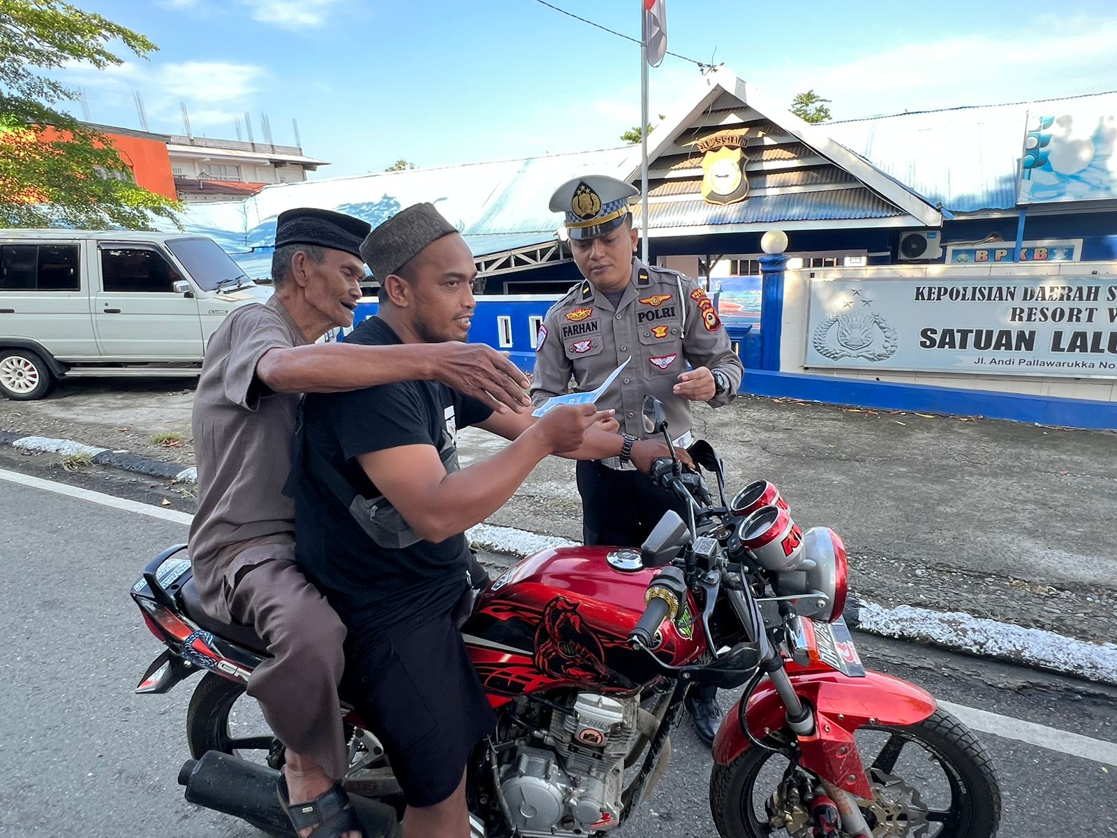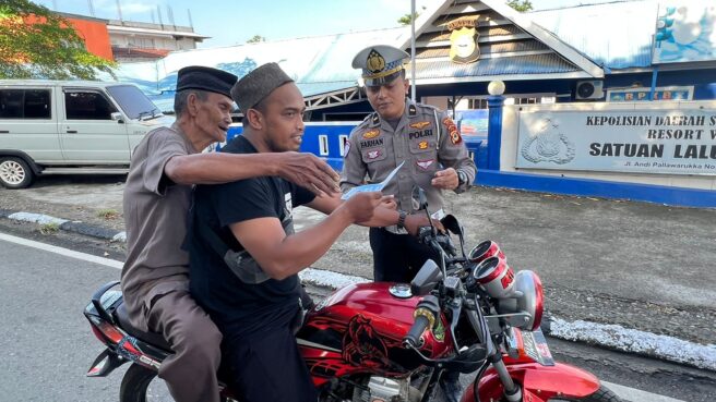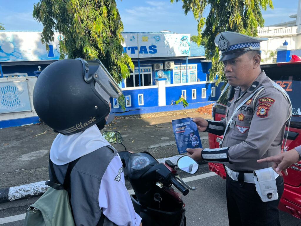 Personil Sat Lantas Polres Wajo bersama dengan petugas dispenda Kab Wajo membagikan pamflet Operasi Zebra 2024 berisi himbauan tentang sasaran khusus selama pelaksanaan Operasi Zebra Pallawa yaitu :