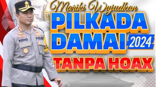 “Mari Wujudkan Pilkada Damai Tampa Hoax, dan menjaga persatuan meskipun berbeda pilihan. Pilkada adalah pesta demokrasi yang harus kita rayakan dengan damai. Jangan sampai karena berbeda pilihan, kita saling bermusuhan. Justru, perbedaan ini harus menjadi kekuatan bagi kita untuk lebih dewasa dalam berdemokrasi,” ujarnya.
