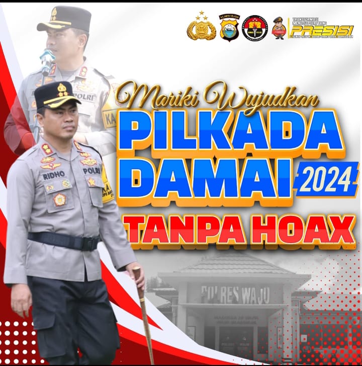 Wsjo Sulsel Okeindonesia.online- Kapolres Wajo, AKBP Muhammad Rosid Ridho, mengajak seluruh masyarakat untuk bersama-sama menjaga situasi kondusif dengan mengedepankan semangat persatuan. Dalam himbauannya, Kapolres Wajo menyampaikan pentingnya untuk menyukseskan Pilkada 2024 dengan damai, tanpa terprovokasi dengan hoax.