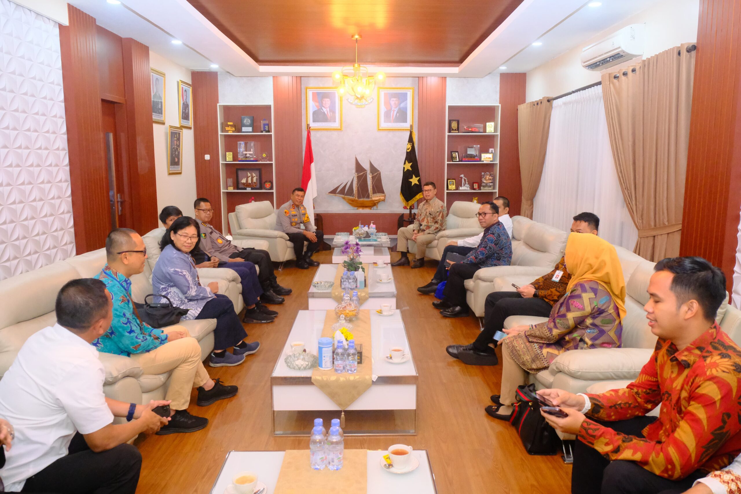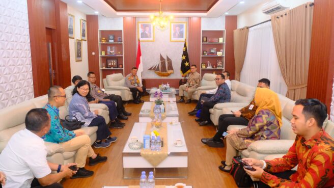 Makassar Sulsel Okeindonesia.online- Kapolda Sulawesi Selatan Irjen Pol. Yudhiawan S.H., S.I.K., M.H., M.Si., didampingi Pejabat Utama Polda Sulsel menerima kunjungan silaturahmi Kepala Badan Pengawas Obat dan Makanan (BPOM) RI, Prof. dr. Taruna Ikrar, di Ruang Tamu Pa’rimpungan Toana Bharadaksa, Lantai 2 Mapolda Sulsel, Jumat (25/10/24). Kunjungan ini merupakan langkah awal dalam menjalin kerjasama strategis antara BPOM dan Polda Sulsel, khususnya dalam menuntaskan masalah mafia kosmetik yang marak terjadi di wilayah Sulawesi Selatan.