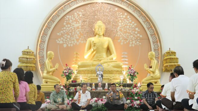 Dalam sambutannya, Kapolda Sulsel menyampaikan rasa terima kasihnya atas sambutan hangat dari Ketua Permabudhi dan umat Buddha yang hadir. Ia mengungkapkan harapannya agar masyarakat Sulawesi Selatan dapat hidup rukun dan damai, tanpa adanya konflik antar umat beragama.