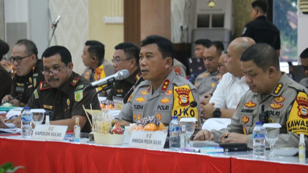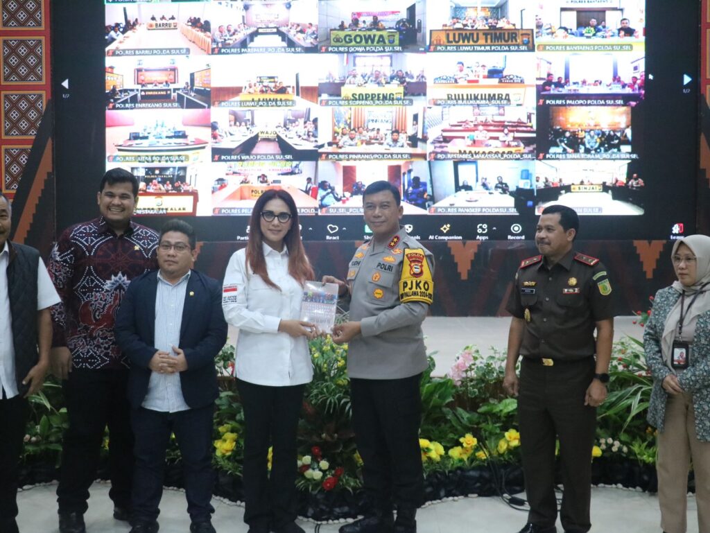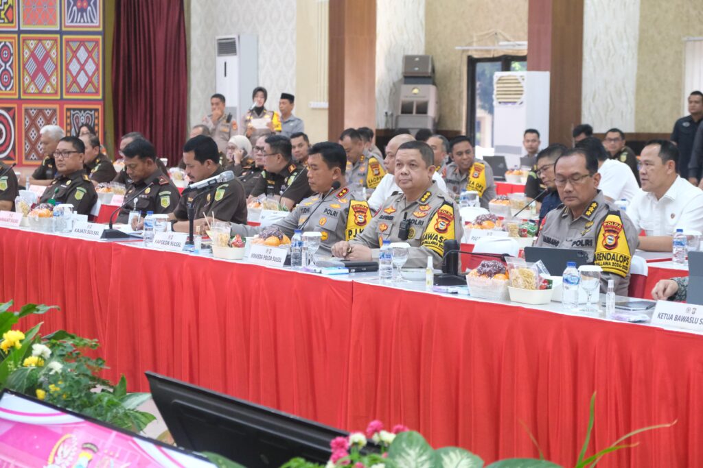 Turut hadir Wakapolda Sulsel, Wakajati Sulsel, Ketua Bawaslu Sulsel, Para PJU Polda Sulsel, Para PJU Kajati Sulsel, Para Komisioner Bawaslu.