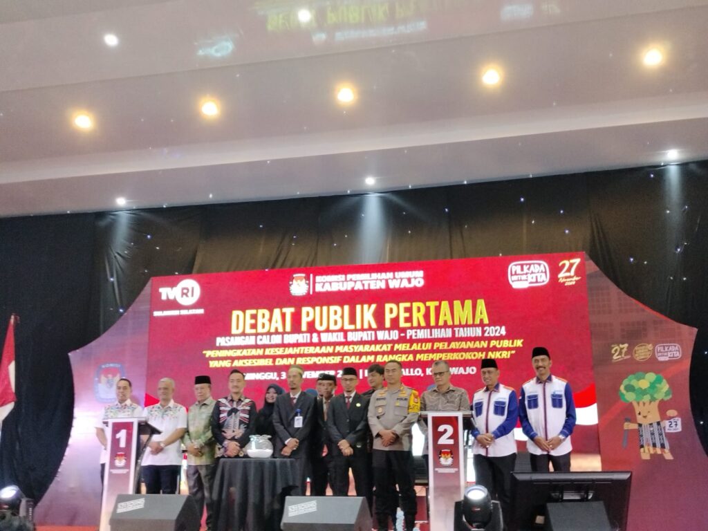 Wajo Sulsel Okeindonesia.online- Pasangan calon Bupati dan Wakil Bupati Wajo, H. Amran Mahmud dan H. Amran SE, atau yang dikenal dengan PAMMASE, tampil penuh percaya diri dan berhasil memukau hadirin dalam debat kandidat kali ini. Dengan jawaban yang terstruktur dan argumentasi yang kuat, PAMMASE menunjukkan kemampuan mereka dalam memimpin serta komitmen untuk melanjutkan program-program pembangunan yang telah berjalan dan menyusun langkah-langkah baru bagi kemajuan Wajo.Minggu 3 /11/2024.