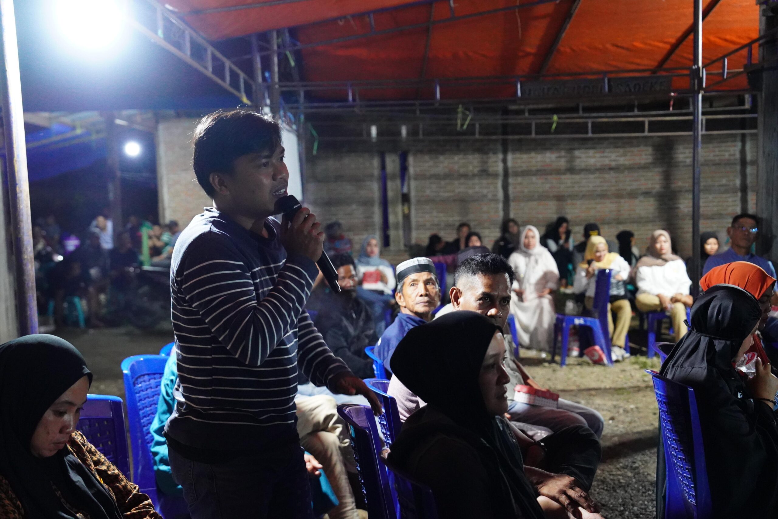 Pertanyaan pertama datang dari Hendra, pemuda setempat, yang menggugah soal fasilitas olahraga. “Pak, tentang narkoba, ini jadi masalah anak-anak muda. Tapi mereka tak punya tempat untuk olahraga,” ucap Hendra, nadanya penuh harap. “Kami butuh lapangan voli atau takraw, Pak, agar mereka bisa beralih ke olahraga.”