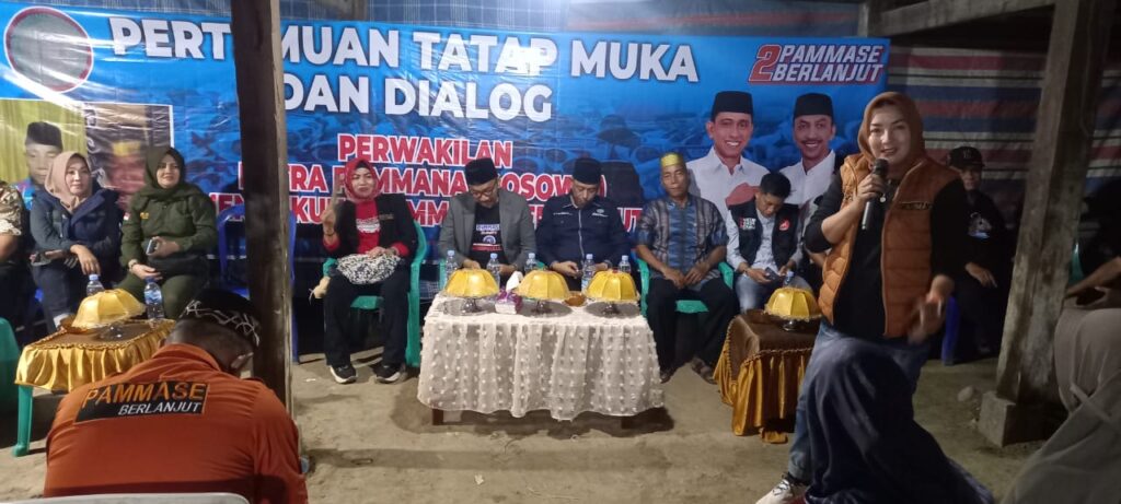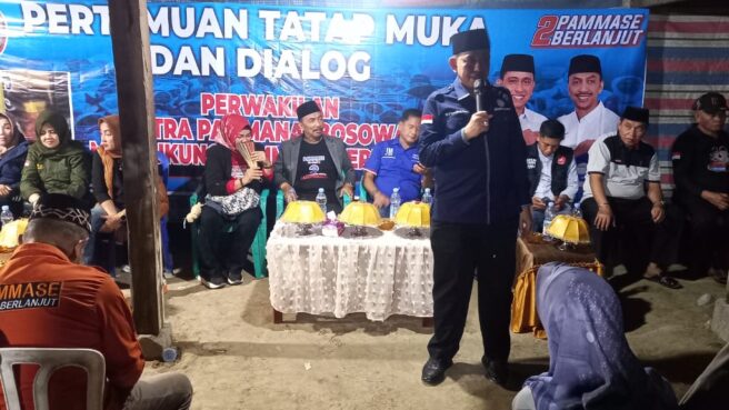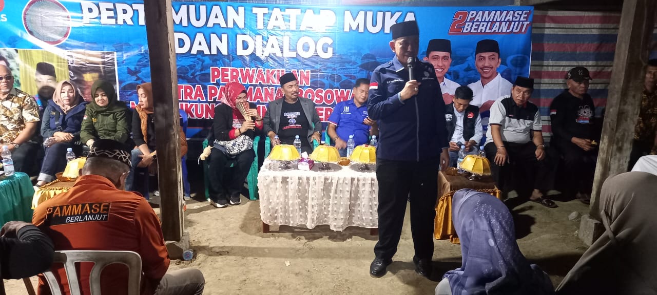 Wajo Sulsel Okeindonesia.online- Kampanye pasangan calon Bupati dan Wakil Bupati Wajo, Drs. H. Amran Mahmud, S.Sos., M.Si., dan H. Amran SE, atau yang dikenal sebagai PAMMASE, berlangsung semarak dikediaman H.Sultani, salahsatu tokoh masyarakat Dusun Ulo, Desa Tadangpalie, Kecamatan Pammana. Warga hadir dan menyambut pasangan PAMMASE dengan penuh semangat, menyatakan dukungan mereka dengan sorakan meriah. Suasana di Desa Tadangpalie begitu bergelora hingga seruan nomor dua menggema . Kamis 7/11/2024.
