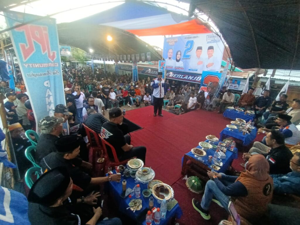 Wajo Sulsel Okeindonesia.online- Jembatan Putih Club (JPC), sebuah komunitas yang dipimpin oleh H. Segon, berhasil melaksanakan acara kampanye dialogis pasangan calon Bupati dan Wakil Bupati Wajo, Drs. H. Amran Mahmud dan H. Amran SE, yang dikenal dengan nama Pammase, di Kelurahan Wiringpalennae. Dengan dukungan dan antusiasme besar, acara ini berjalan sukses, dihadiri ratusan warga yang menyatakan komitmen penuh untuk memenangkan pasangan Pammase pada pemilihan mendatang. Sabtu 9/11/2024.