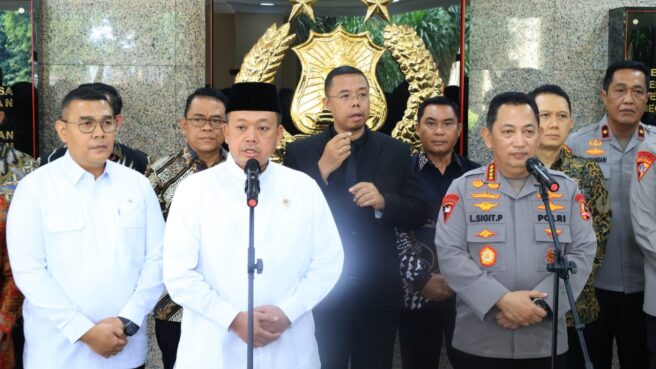 Hal itu dikatakan Kapolri usai mendapatkan kunjungan dari Menteri ATR/BPN Nusron Wahid di Mabes Polri, Jumat (8/11/2024). Jenderal Sigit mengapresiasi lawatan Nusron Wahid untuk membahas kerjasama dengan Polri dalam mendukung program-program di Kementerian ATR/BPN. Pasalnya, Menteri Nusron mendapatkan tugas dari Presiden Prabowo Subianto dan akan menjadi penilaian khusus terhadap kinerja Kementerian-nya.