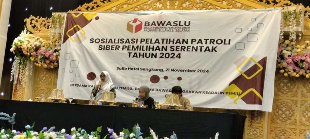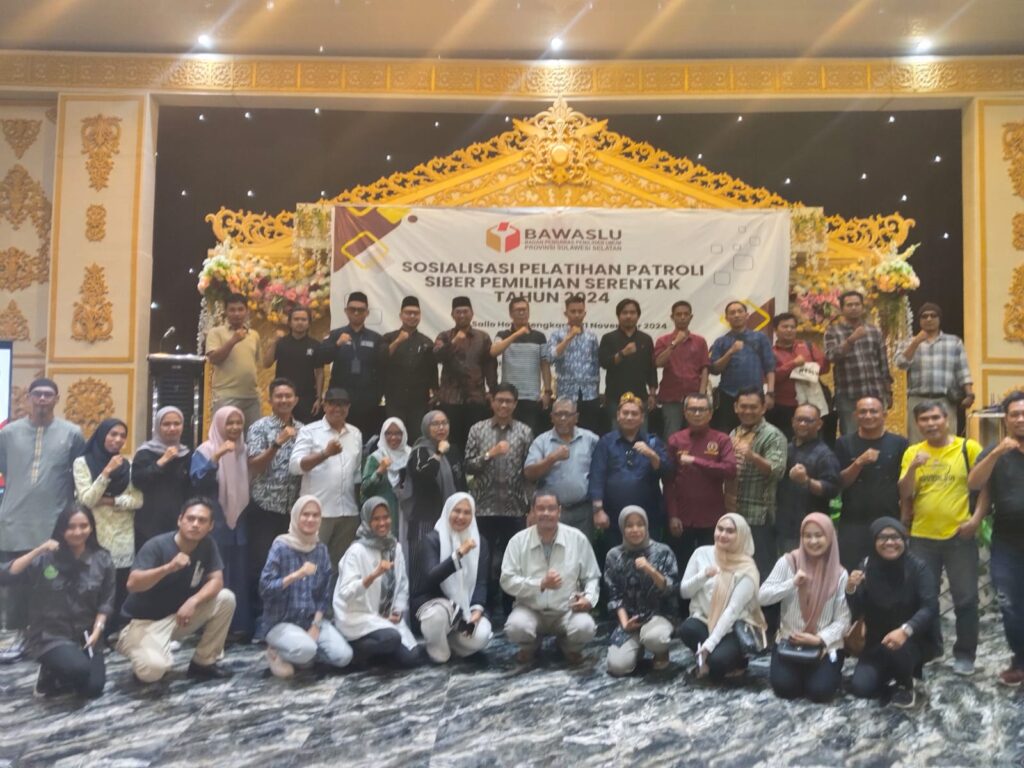 Wajo Sulsel Okeindonesia.online- Dalam upaya memperkuat pengawasan terhadap potensi pelanggaran selama masa pemilihan, Badan Pengawas Pemilihan Umum (Bawaslu) Provinsi Sulawesi Selatan menggelar Sosialisasi Pelatihan Patroli Siber pada Kamis, 21 November 2024, di Hotel Sallo Mall, di jalan H.Bau , no.117 Sengkang, Kec. Tempe, Kabupaten Wajo.