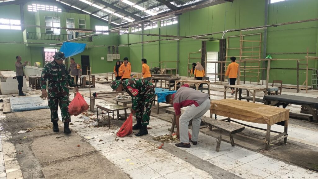 Wajo Sulsel Okeindonesia.online- Wujudkan Lingkungan Bersih, anggota Polsek dan Koramil 1406-06 Pammana, Pemerintah Kelurahan Cina dan Pemerintah Kecamatan Pammana serta mahasiswa Kuliah Kerja Nyata (KKN) dari Universitas Negeri Makassar (UNM) di pimpin Ps.Kapolsek Pammana IPTU H. Laenre, laksanakan gotong royong pembersihan Pasar Maroanging. Kelurahan Cina Kecamatan Pammana Kabupaten Wajo. Jum’at (22/11/2024).