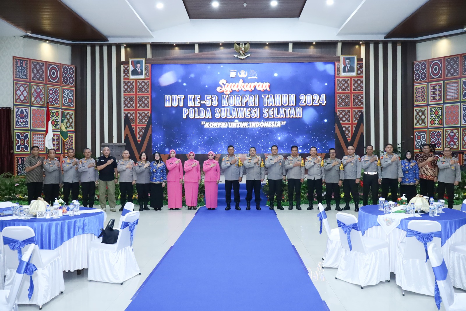 Acara Syukuran dihadiri Langsung Kapolda Sulsel Irjen Pol Yudhiawan dan Ketua Bhayangkari Sulsel, Ketua Korpri Propinsi Sulsel, Irwasda Polda Sulsel, para PJU Polda Sulsel, serta para Ketua Korpri dari AD, AU, dan AL. dan sejumlah Pensiunan ASN Polda Sulsel.