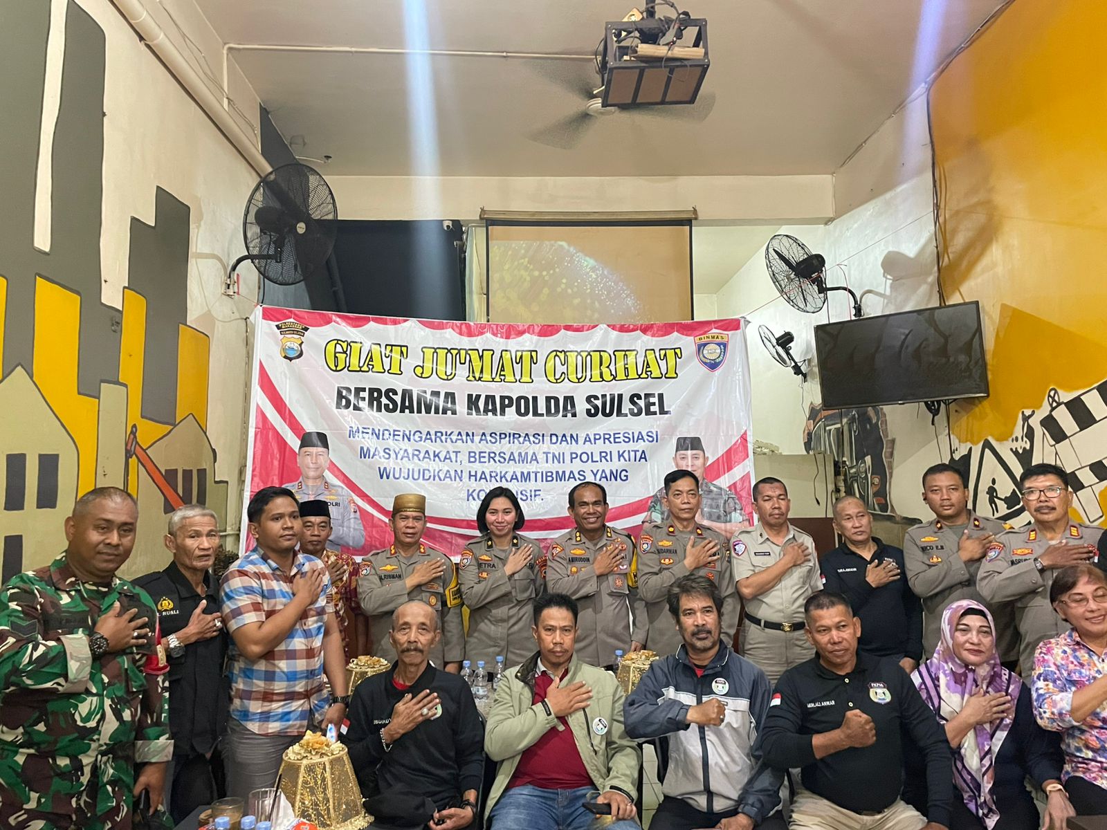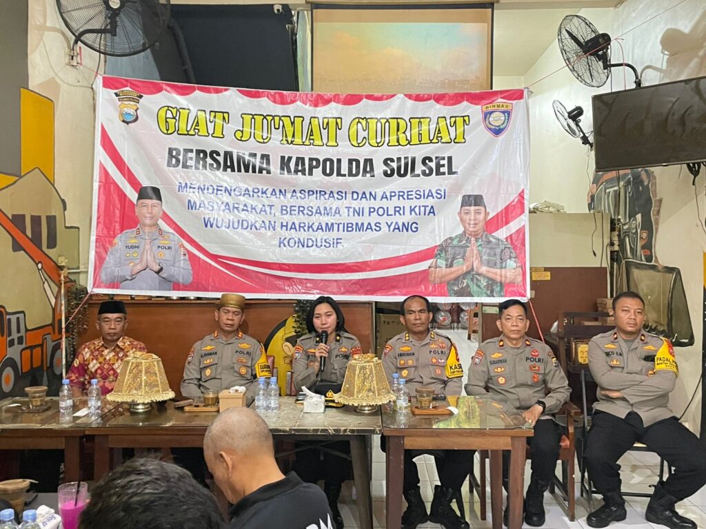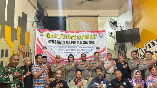 Makassar Sulsel Okeindonesia.online- Puluhan masyarakat mengikuti Jumat Curhat yang rutin digelar Kapolda Sulsel.Kali ini dilaksanakan di Warkop ATM Coffee, Kota Makassar, Jumat 6/12/2024.