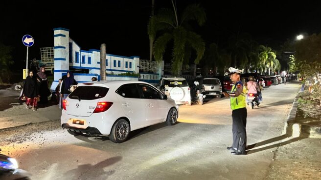 Wajo Sulsel Okeindonesia.online- Personil Satuan Lalu Lintas Kepolisian Resor Wajo melaksanakan pelayanan kepada masyarakat dan pengaturan serta pengawasan arus lalu lintas pada malam hari dalam rangka terciptanya Kelancaran Lalulintas dan mencegah Laka Lantas, Sabtu (4/1/2024).